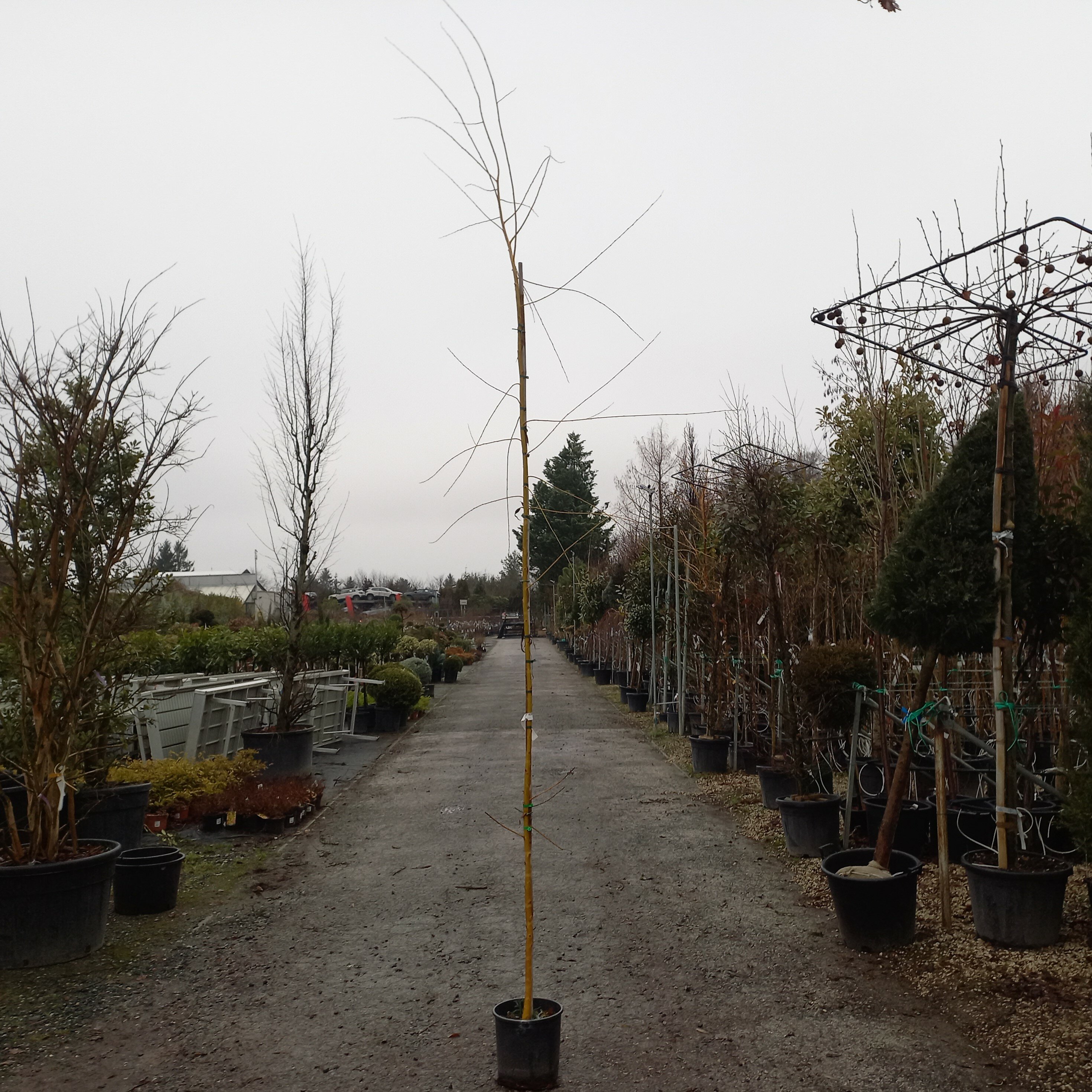 15-20 m magasra növő fa, széles koronával, sárga színű lecsüngő ágakkal. Tápdús, jó vízellátású talajt kedvel.