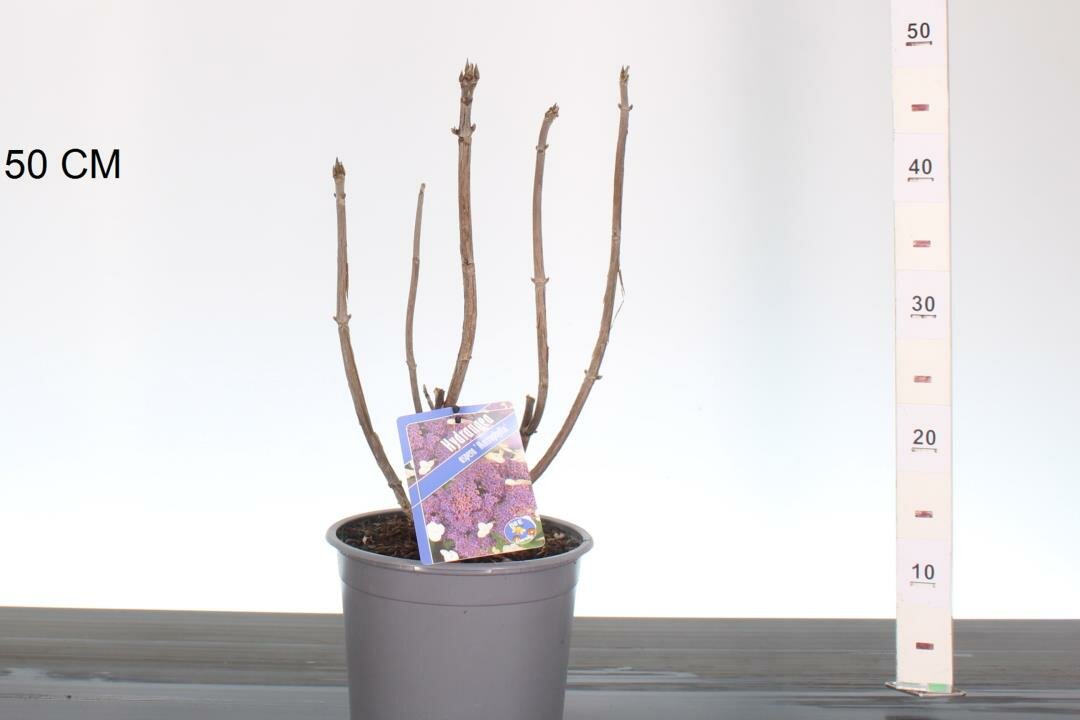 Széles levelű bokra 3-3,5 méter magasságig is kiterjed. Virágai nagyok, akár 25 centiméteresre is kifejlődhet. Júliustól-augusztusig virágzik.A kerti hortenziákhoz képest jobban szereti a napot és a szárazságot, azonban forró és száraz nyarakon meghálálja az öntözés